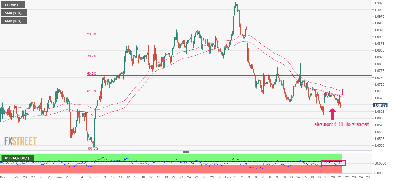 如果欧元/美元跌破2月17日低点1.0613,将打压欧元/美元跌至12月22日低点1.0573。如果欧元/美元跌破该水平,将延续下跌至1月6日的低点1.0483。