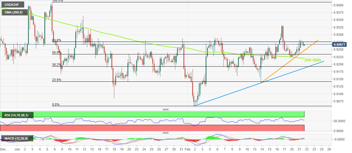 值得注意的是,自2月1日以来的上升支撑缐接近0.9185,似乎為美元/瑞郎多头的最后防缐。