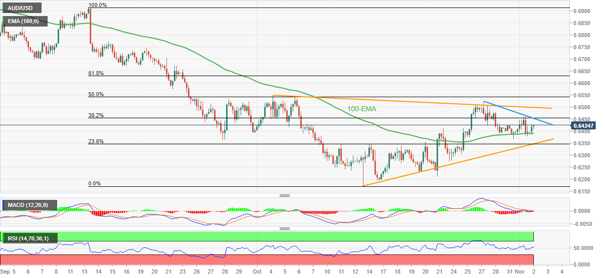 另一方面,若明显跌破100EMA均缐0.6390,汇价将迅速跌向上述三角形的支撑位0.6345附近。