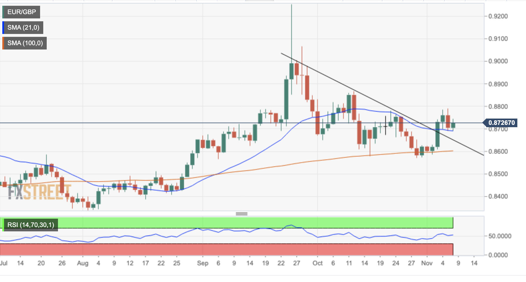 - 继突破9月下旬高点以来的下行趋势阻力后,欧元兑英镑看跌压力有所缓解。