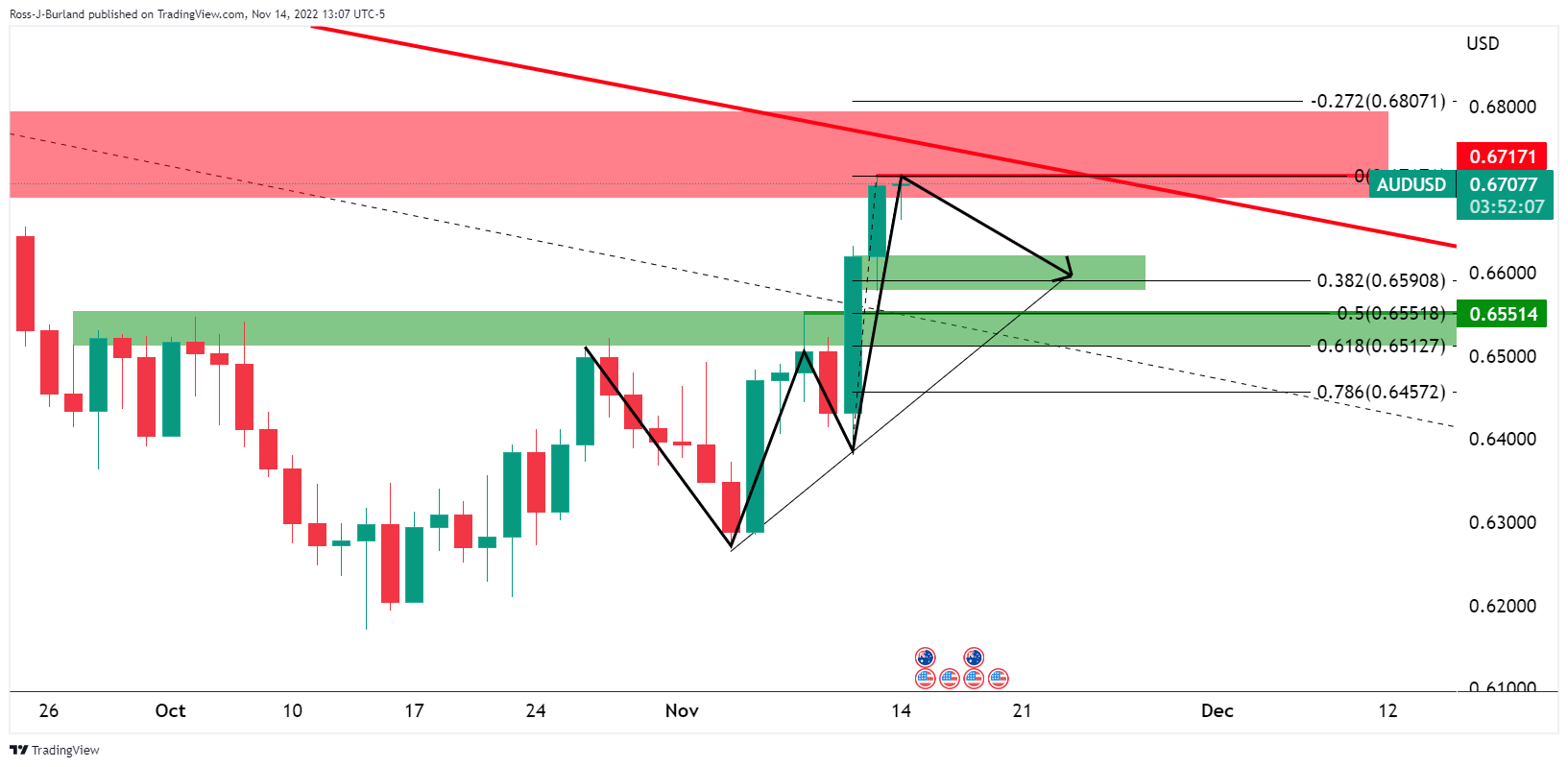 • far:澳元兑美元空头蛰伏于关键阻力区域附近。