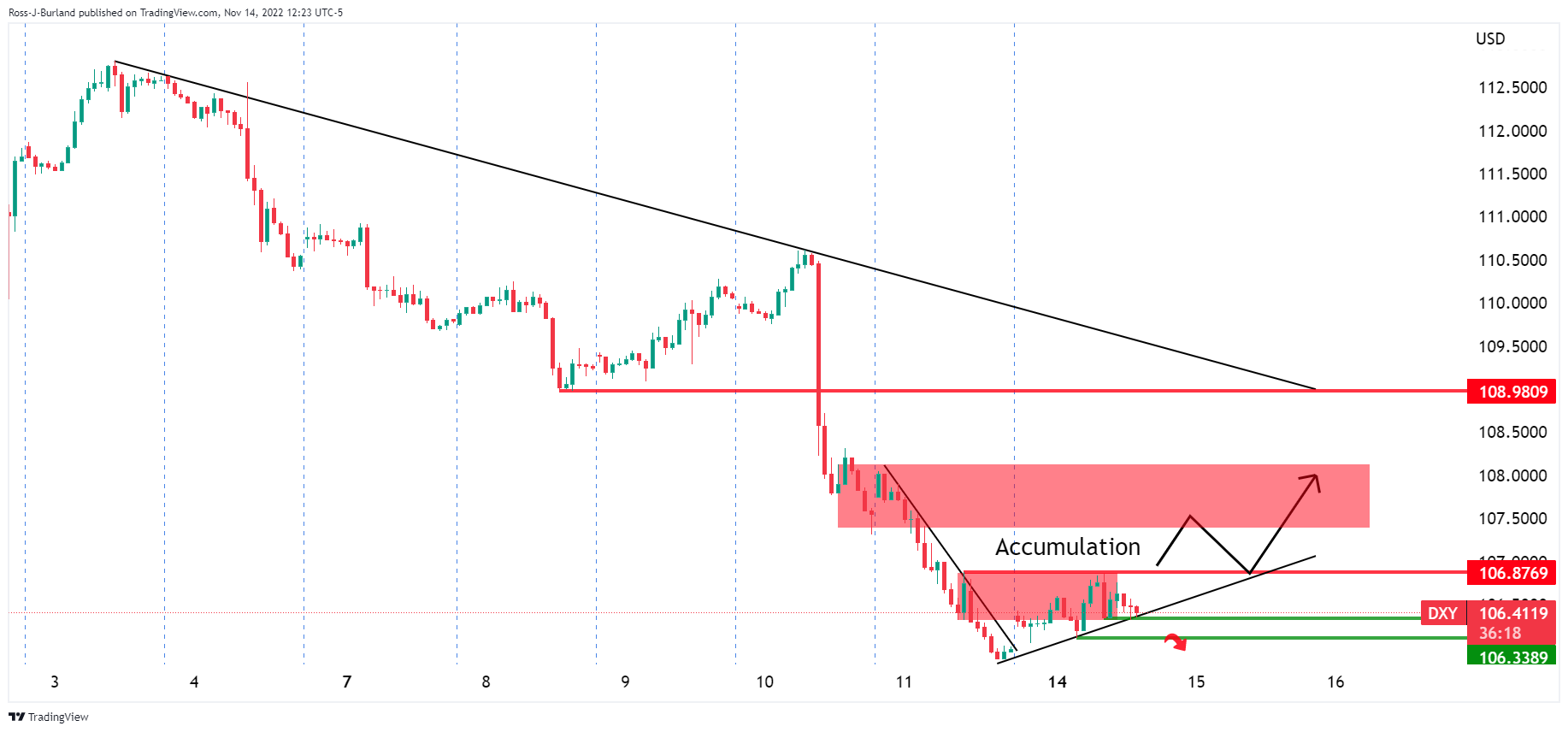 • 小级别周期显示美元正累积动能。