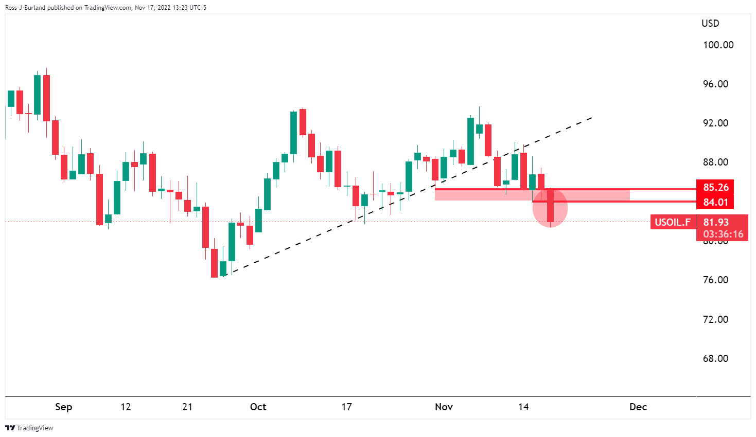 WTI油价若跌破84美元,就会全然反转这一倾向: