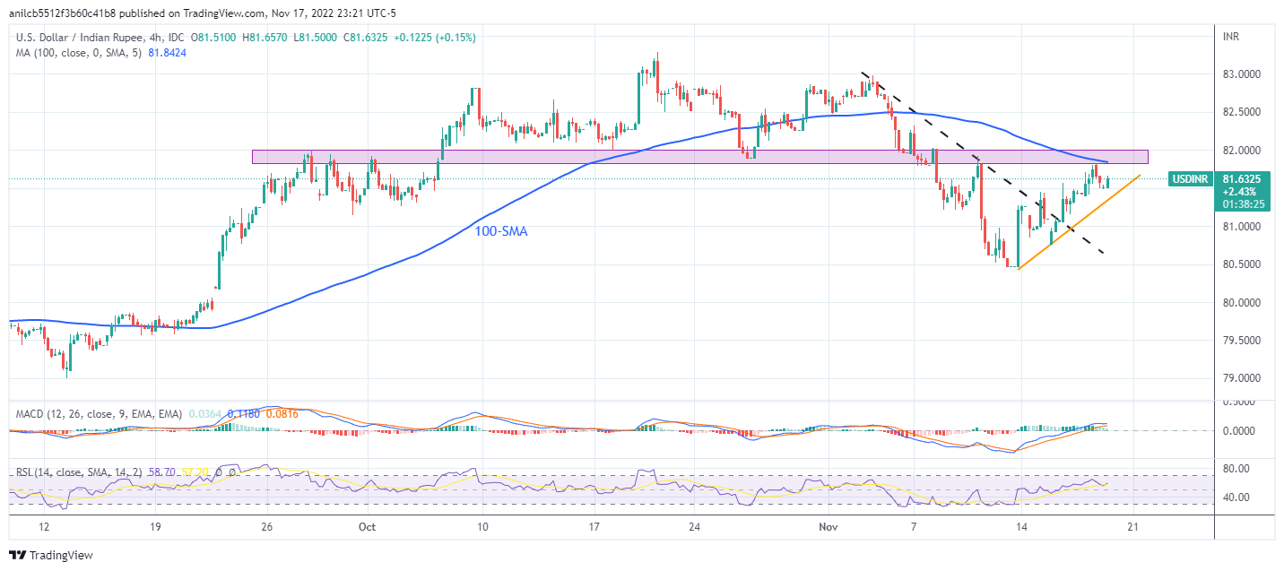 不过100SMA以及9月28日以来的多重水平介于81.85-82.00之间,似乎成為美元兑卢比多头的强劲障碍。