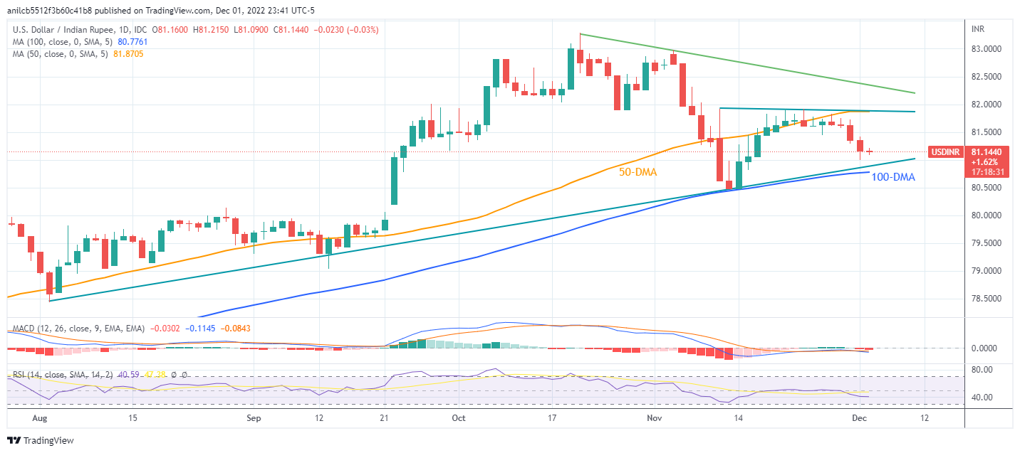 美元/印度卢比在两周最低水平附近仍处于守势,目前持稳于81.10附近。空头结束四日跌势后在周五早些时候暂歇。即便如此,该货币对多头依然有希望延续近期跌势。