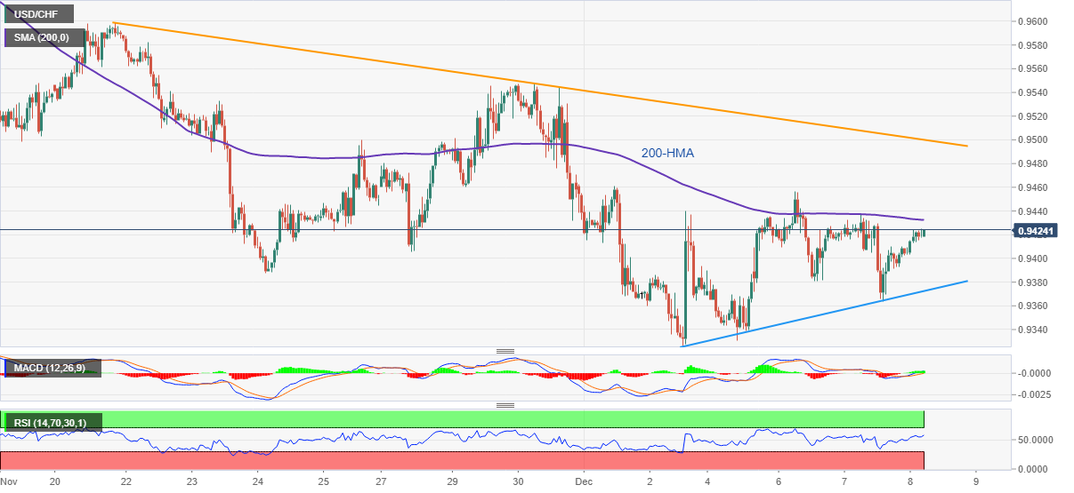 不过在0.9435附近的200-HMA限制汇价立即上行。此外自11月21日以来的下降趋势缐也构成短期关键阻力位,该缐目前接近0.9500。