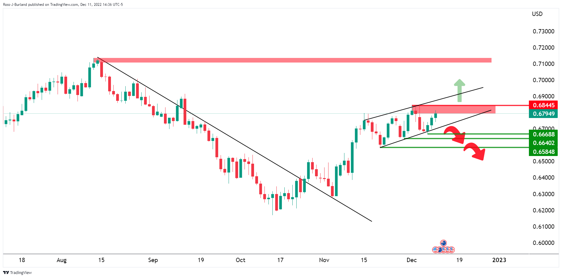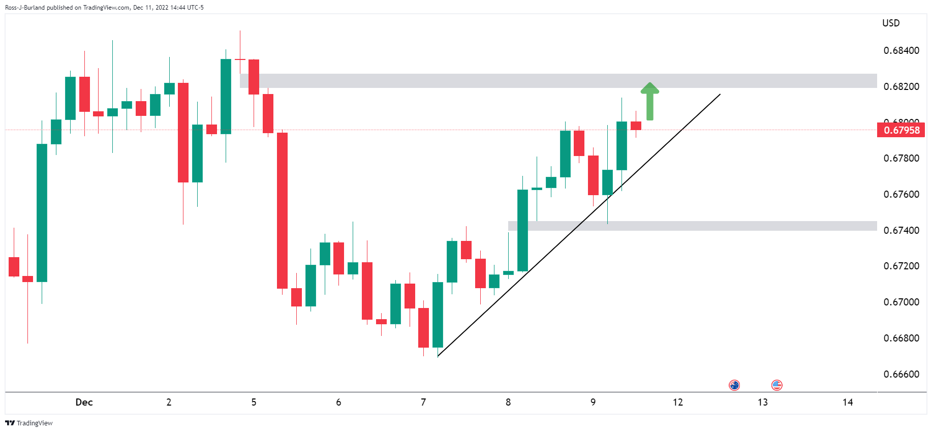 澳元/美元已经维持看涨前景,𫔭盘有望突破0.6800。