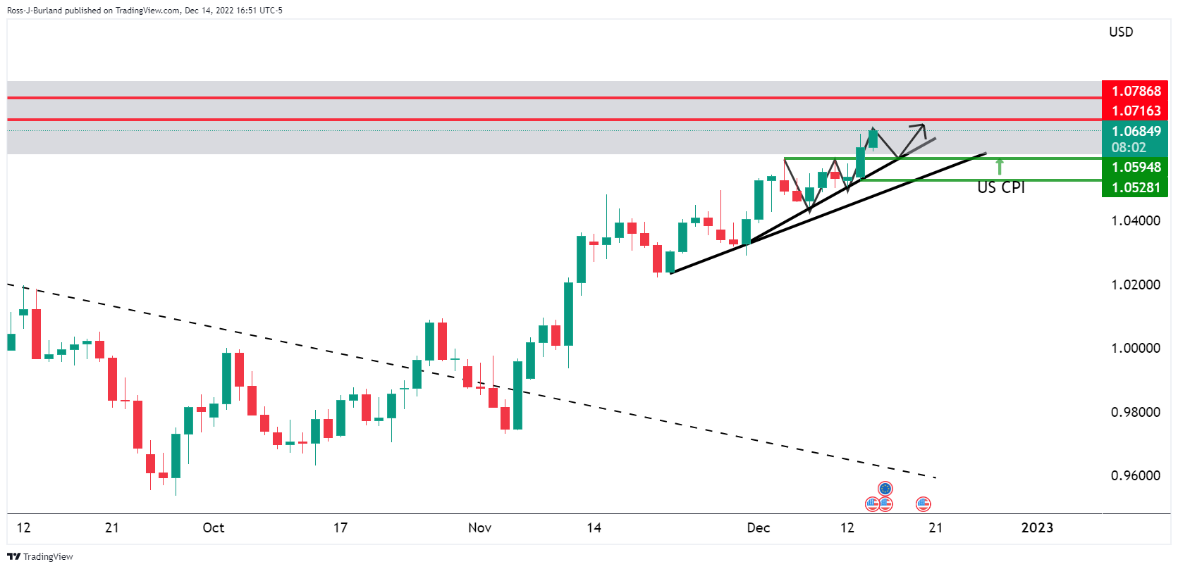 上图将1.0600标记為关键支撑区域,下方的1.0520為因美国通胀而反弹的起点。