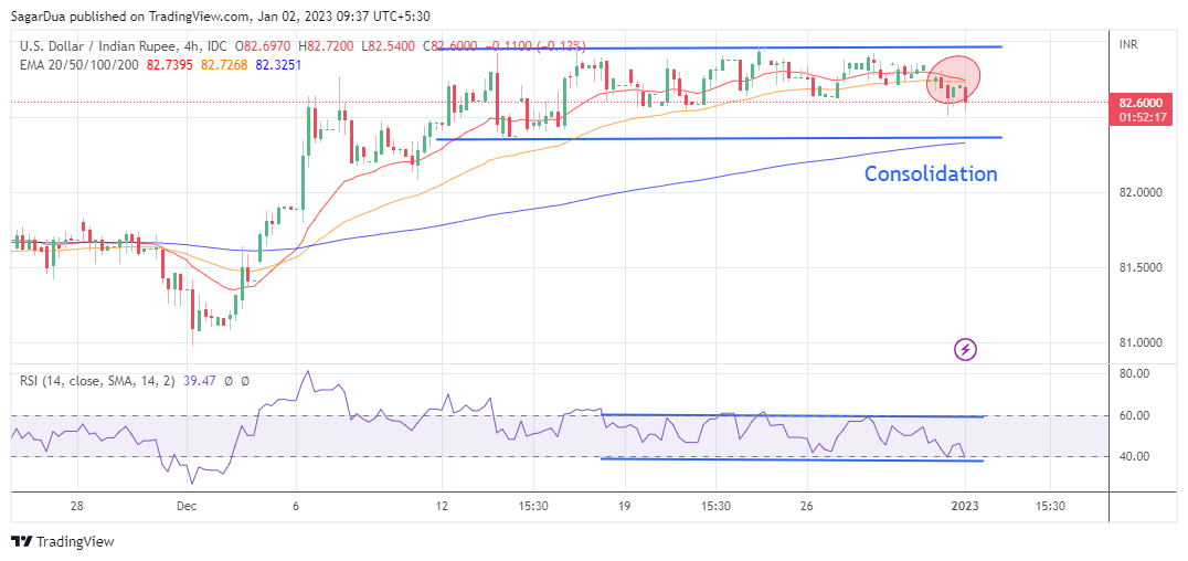 - 相对强弱指标(14)将激活看跌动能,美元/印度卢比处在看跌区间。