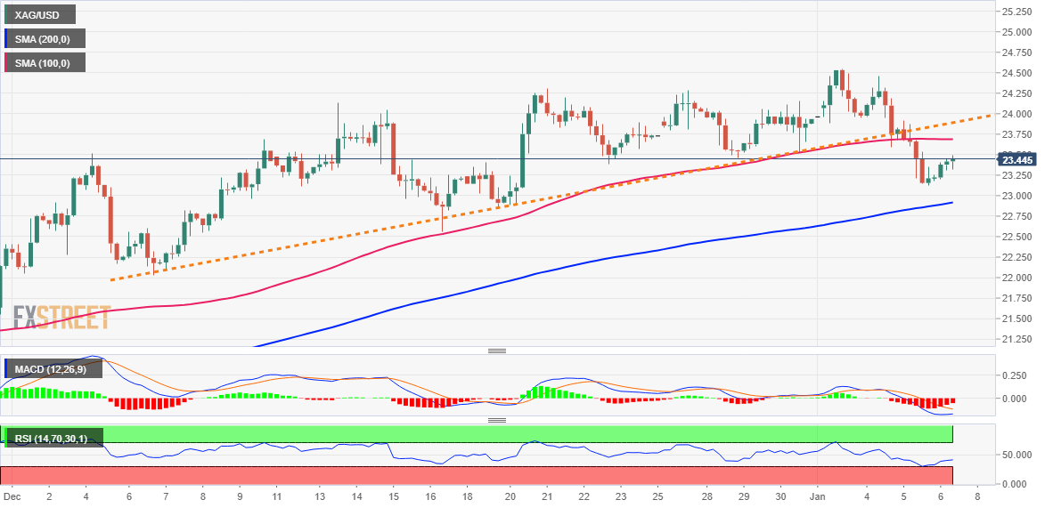 因此,任何后续的上涨都更有可能在23.70美元区域附近遇到新的卖盘,或在4小时图上的200周期移动均缐附近。这反过来应该会在前面提到的上升趋势缐支撑跌破点附近限制白银/美元,该水平现在变成了阻力位,在23.90- 24.00美元区域附近。后者与隔夜波动高点重合,应该会成為一个关键点,如果果断突破,可能会引发围绕白银的一些空头回补。