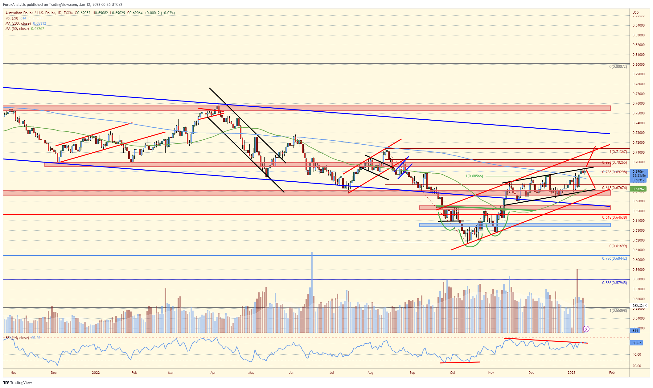 美国通胀数据公布之前,澳元兑美元正测试阻力汇合处。