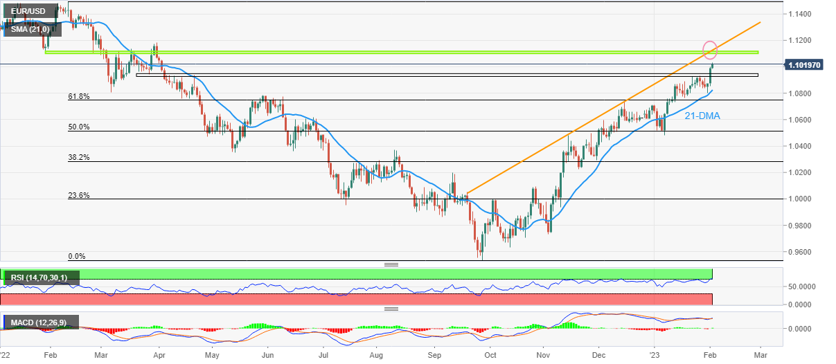 即使欧央行决议提升了价格,13个月前的水平区域以及自2022年9月底以来上升趋势缐似乎為欧元兑美元多头面临的强劲障碍,该区域目前在1.1120-30附近。