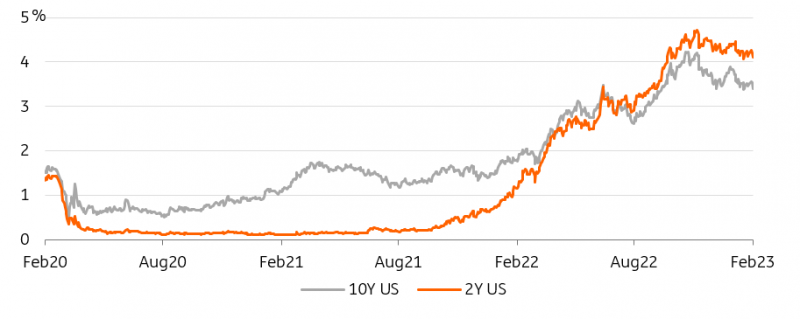 利率指导:欧洲央行在每次会议的基础上做出决定,但仍在当前条件下提供利率展望。这一指导方针应该是今天的主要焦点。去年12月,欧洲央行暗示“利率仍将不得不以稳定的速度大幅上升”,行长克里斯蒂娜•拉加德(Christine Lagarde)在新闻发布会上明确表示,人们应该预计“在一段时间内以50个基点的速度”加息。市场基本上同意我们关于3月份再加息50个基点的看法,预计届时美联储将再加息94个基点。此后,加息步伐放缓,7月会议共降息153个基点,即存款利率达到3.5%的峰值。