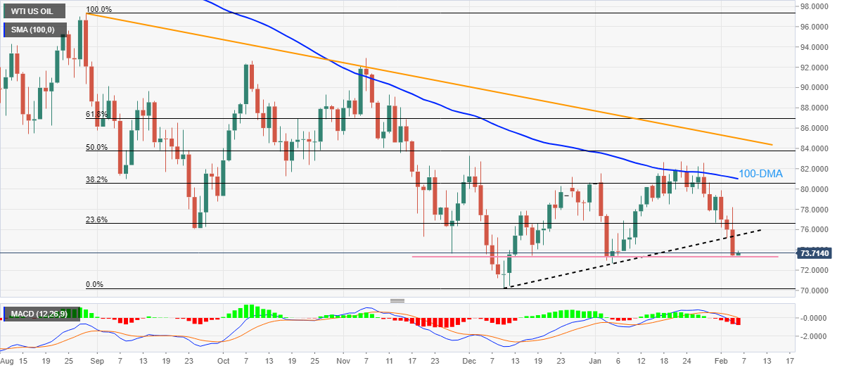 相反,回调行情可能会再度测试73.40美元附近的水平区域,包括自12月中旬以来的多重水平。