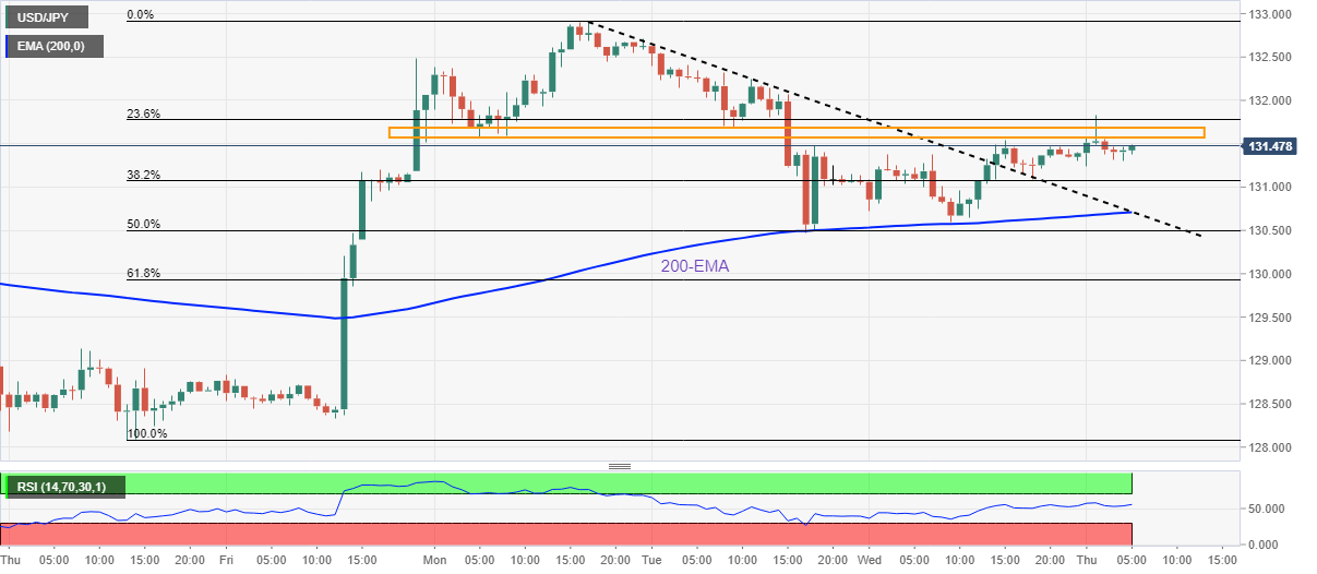 即便如此,自周一以来的多重阻力位接近131.60-70的水平区域,挑𢧐汇价短期上行。