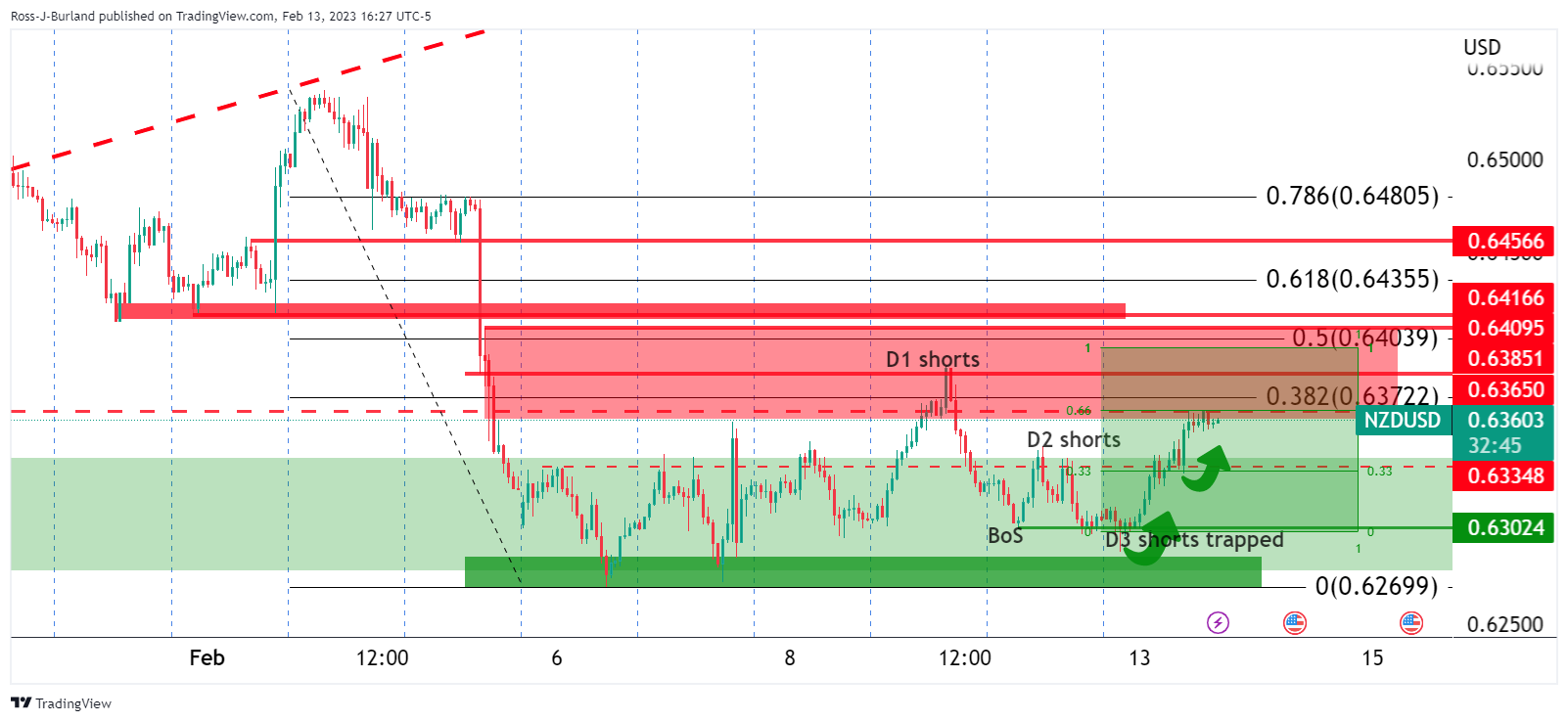 本周𫔭盘纽元/美元反弹,美国时段收盘时上涨0.8%,处在0.6360附近,原因是受打击的空头𫔭盘后受到挤压。全球风险偏好回升且日内美国时段公布的美国关键通胀前美元指数小幅回调也影响纽元/美元仓位。