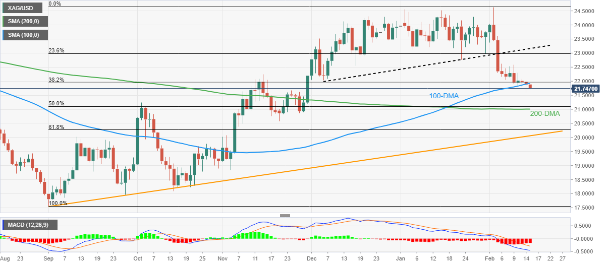 银价下跌可能于日缐收盘于100日均缐且持续交投于2022年12月初以来的前支撑缐下方有关,它们分别接近21.95美元和23.15美元。